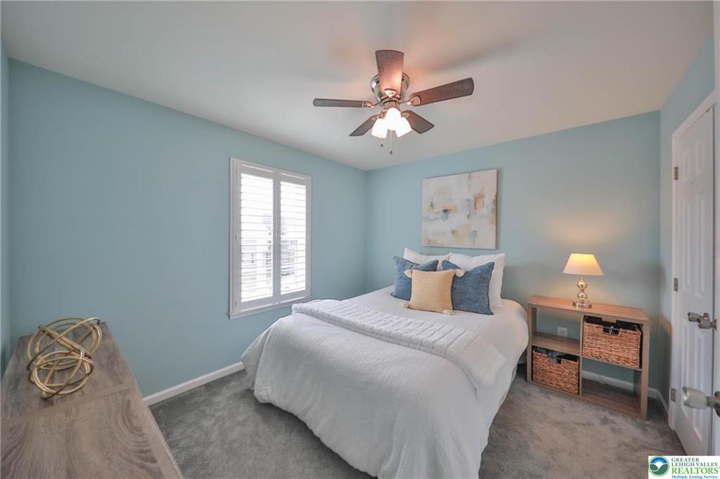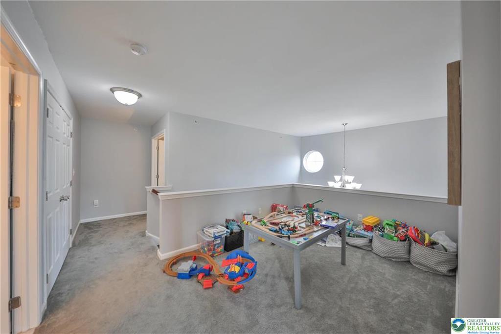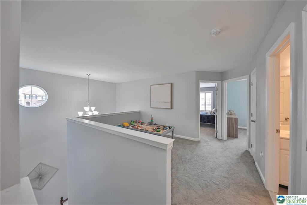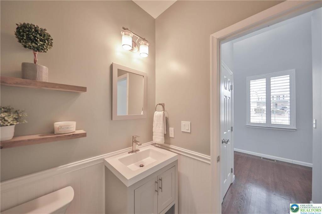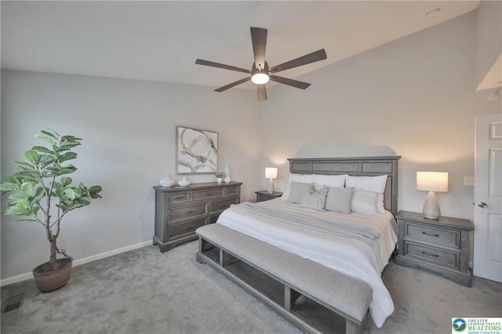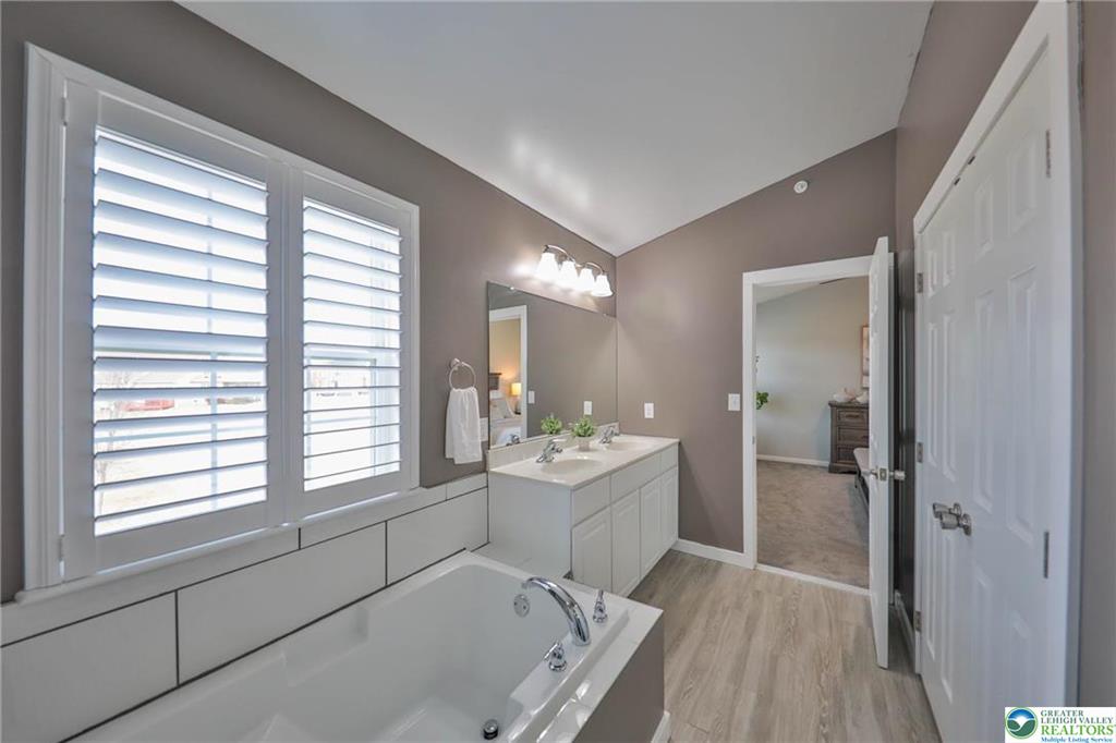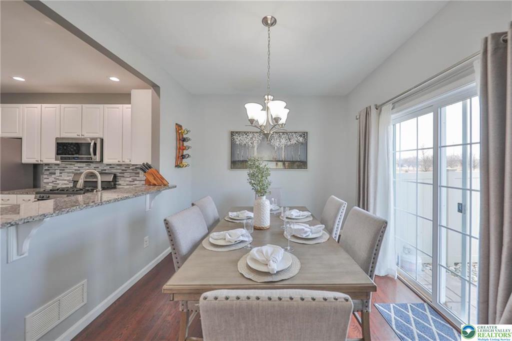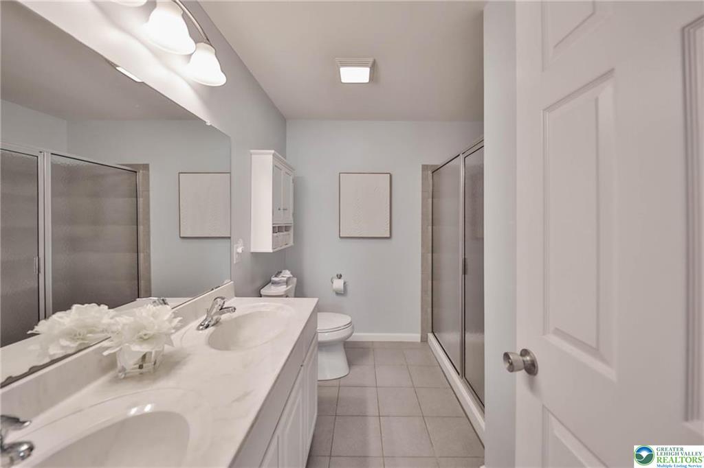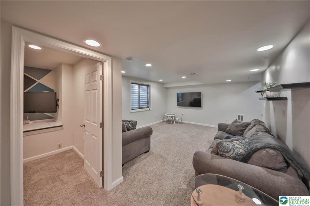 This Striking end unit townhome located in highly sought after Nazareth School District, is spotless and sophisticated, and delivers an impressive open concept designed for entertaining. A spacious foyer entry welcomes you, beautiful hardwood floors encompass most of the first floor, classy custom plantation blinds give that elevated look, and a sleek gas fireplace is an eye catching detail in the well sized family room. Modern tiled floor, granite counters and backsplash, 42" cabinets, oversized pantry, center island with breakfast bar, gas cooking, and stainless steel appliances make up the well appointed kitchen. The adjacent dining area has sliding doors that lead to a great back yard. Vaulted ceilings accent a primary bedroom oasis with its own luxurious en-suite which was just recently renovated and features tiled floors, dual vanity, soaking tub, step in shower, and large walk in closet. The roomy loft provides an excellent flexible space for many uses. The finished basement features a half bath, a second family room, another room for office or workout room and there is plenty of storage space. An elegant stamped concrete patio covers most of the back of the home and is perfect for relaxing and hosting BBQ's. Enjoy a convenient location with walking trails, park, and splash pad nearby, plus many shopping conveniences are within minutes. This well cared for home is move in ready, and you will be proud to call this place home.