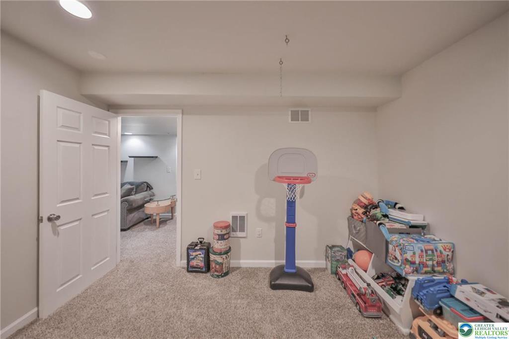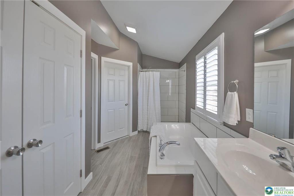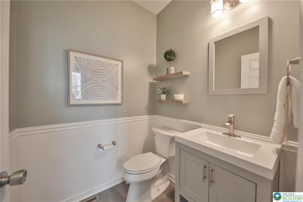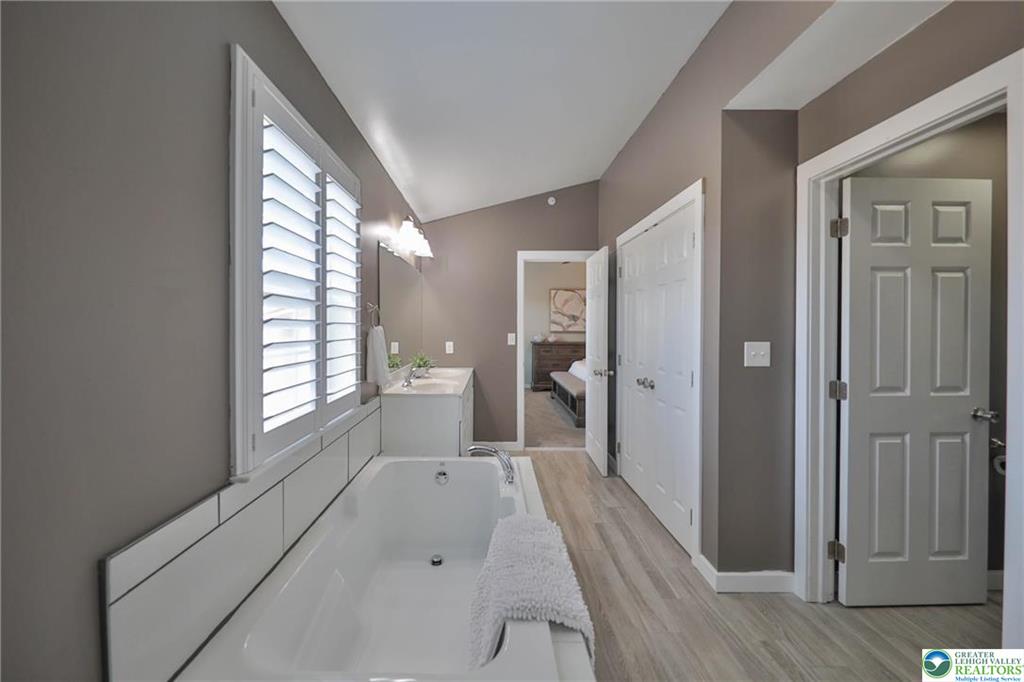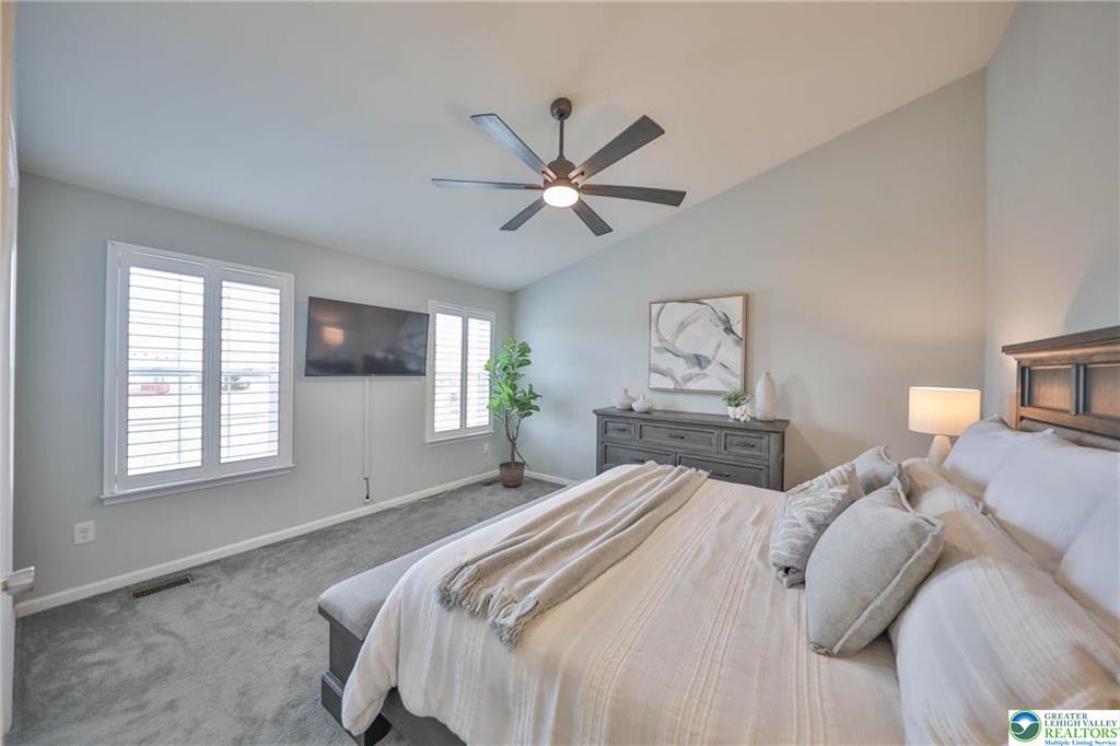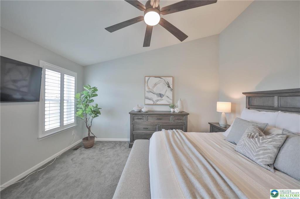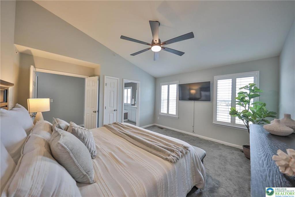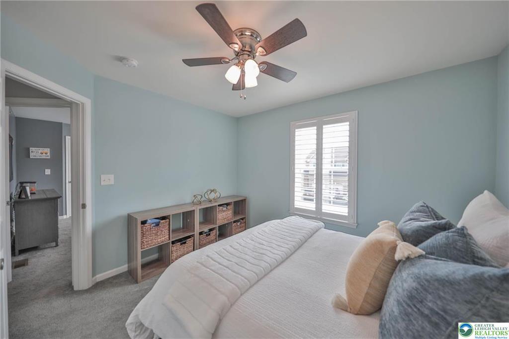 This Striking end unit townhome located in highly sought after Nazareth School District, is spotless and sophisticated, and delivers an impressive open concept designed for entertaining. A spacious foyer entry welcomes you, beautiful hardwood floors encompass most of the first floor, classy custom plantation blinds give that elevated look, and a sleek gas fireplace is an eye catching detail in the well sized family room. Modern tiled floor, granite counters and backsplash, 42" cabinets, oversized pantry, center island with breakfast bar, gas cooking, and stainless steel appliances make up the well appointed kitchen. The adjacent dining area has sliding doors that lead to a great back yard. Vaulted ceilings accent a primary bedroom oasis with its own luxurious en-suite which was just recently renovated and features tiled floors, dual vanity, soaking tub, step in shower, and large walk in closet. The roomy loft provides an excellent flexible space for many uses. The finished basement features a half bath, a second family room, another room for office or workout room and there is plenty of storage space. An elegant stamped concrete patio covers most of the back of the home and is perfect for relaxing and hosting BBQ's. Enjoy a convenient location with walking trails, park, and splash pad nearby, plus many shopping conveniences are within minutes. This well cared for home is move in ready, and you will be proud to call this place home.